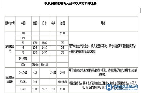 ·模具鋼材選用表 塑料模具材