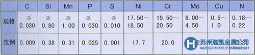 NAS 185N(UNS S31254)是含有高鉻高鉬的高耐腐蝕不銹鋼,即使是在高溫、海水等苛刻的環境下仍保持良好的耐腐蝕性。某種情況下可以和哈氏合金以及鈦板相媲美,具有高耐腐蝕性的高經濟性不銹鋼。 用途 >>海水環境:海水淡化裝置,海水換熱器,電容器電子管等 >>高濃度氯離子環境:紙漿造紙工業,各種漂白裝置等 >>含高濃度食鹽的環境:樹脂制造裝置,藥品的反應容器以及配管等 化學成分%