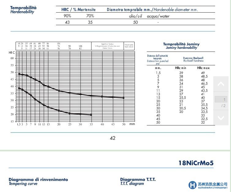 關于18nicrmo5合金鋼,蘇州浩凱模具鋼公司提供18nicrmo5模具鋼材價格,18nicrmo5型號規格和對應牌號,18nicrmo5性能_用途及化學成分_密度_硬度,18nicrmo5圓鋼和鋼板多少錢一公斤.更多18nicrmo5出廠狀態和回火淬火注意事項,馬上咨詢蘇州浩凱模具鋼公司在線客服.