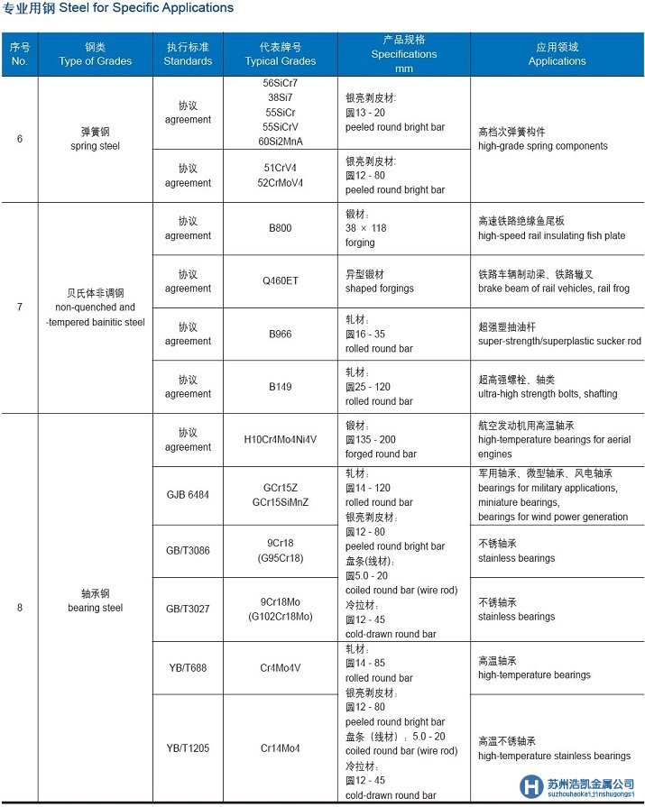 • 蘇州浩凱供應上鋼五廠彈簧鋼與軸承鋼規格表
